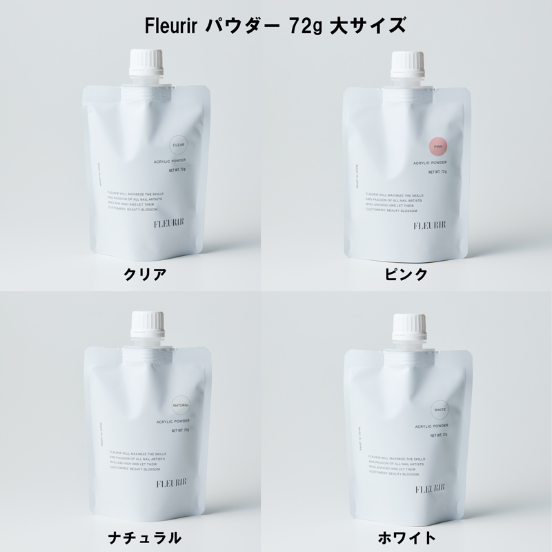 フルーリア Fleurir パウダー 72g 大サイズ 【4種からご選択】 クリア ピンク ナチュラル ホワイトアクリルネイル ガラス 透明感 バブルレス フレンチ スカルプチュア ジェルネイル セルフネイル ネイルアート デコネイル ネイルグッズ 新品 送料無料