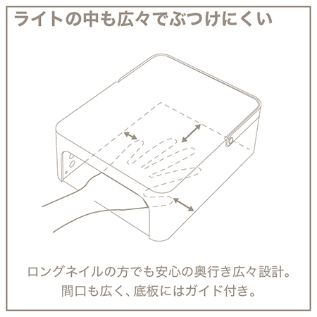・爪に全体的に光が当たるよう設計されたライト配置