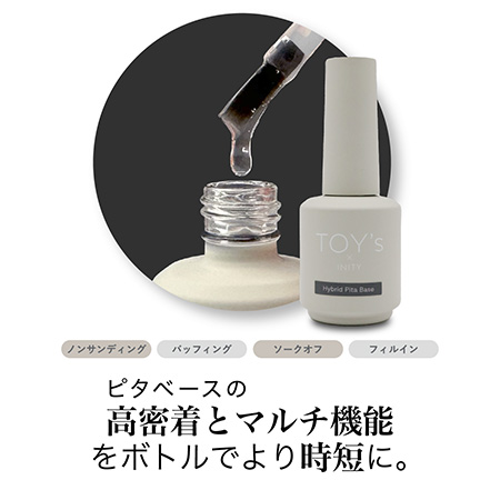 TOY's×INITY ハイブリットピタベース 12ml ボトルタイプ ベースジェル ベースコート ノンサンディング フィルイン ジェルネイル 多用途 低硬化熱 ソフトジェルタイプ ソークオフタイプ ネイルアート ネイル用品 日本製 トイズバイアイニティ 新品 送料無料