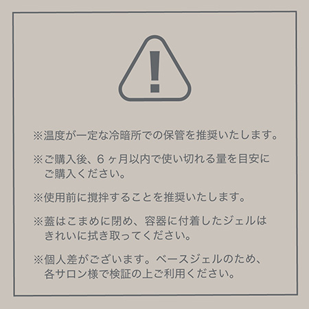 ※個人差がございます。ベースジェルのため、各サロン様で検証の上ご利用ください。