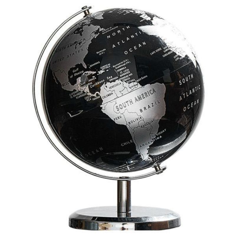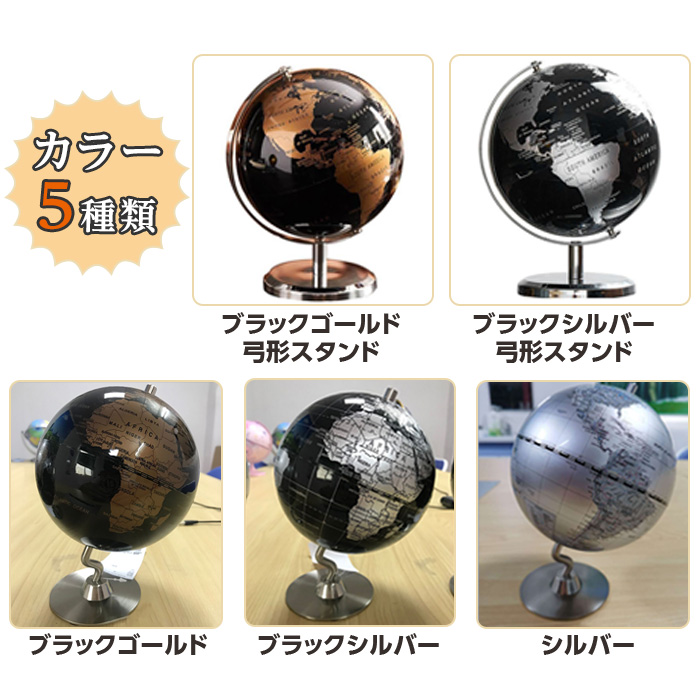 インテリア地球儀 【5色からご選択】20cm ブラック ゴールド シルバー 弓型スタンド 地球儀 英語表記 世界地図 学習 インテリア アンティーク ヴィンテージ 卓上 オブジェ 雑貨 おしゃれ プレゼント ギフト 新品 送料無料