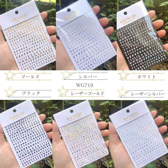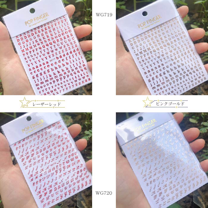 活字体と筆記体の2種類からお選びいただけるアルファベットデザインのネイルシールです。