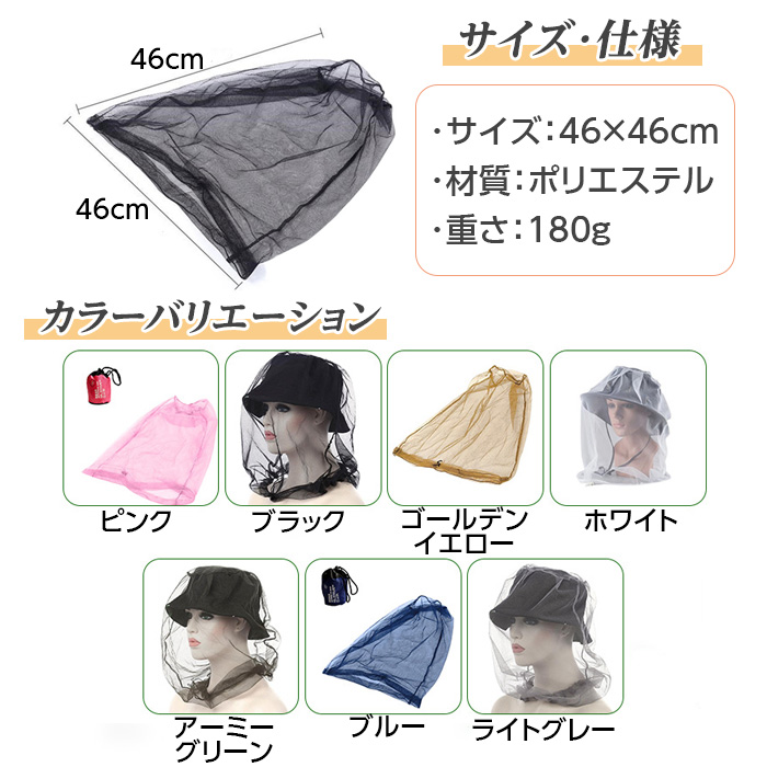 新品の 防虫ネット 【7色からご選択】 防虫対策 虫対策 蜂対策 農作業 昆虫採集 養蜂 ハチの巣除去 園芸 アウトドア 虫刺され キャンプ ガーデニング カバー フェイスガード 畑仕事 庭仕事 草むしり メッシュ生地 収納袋付属 帽子の上からかぶる になります。