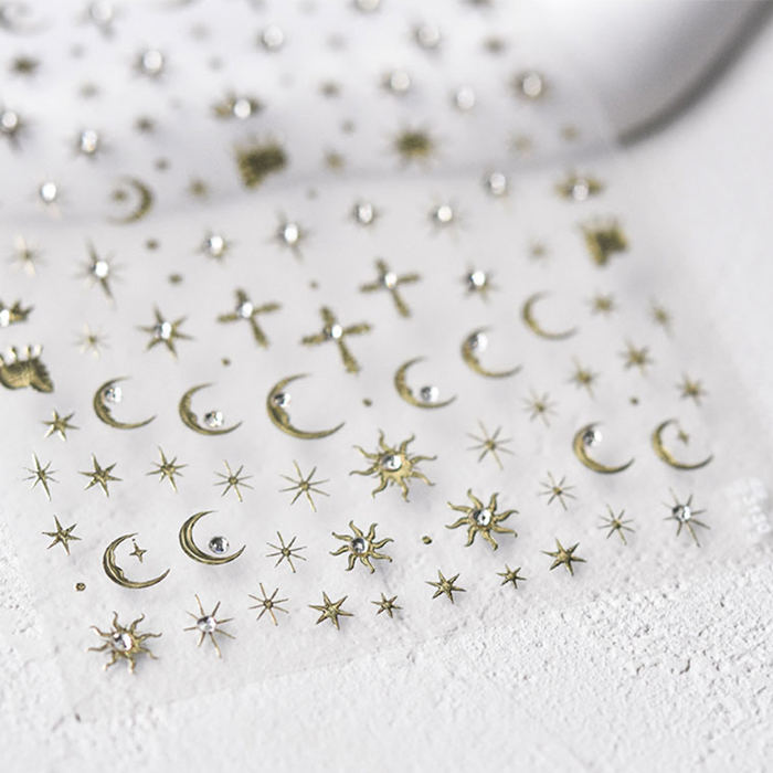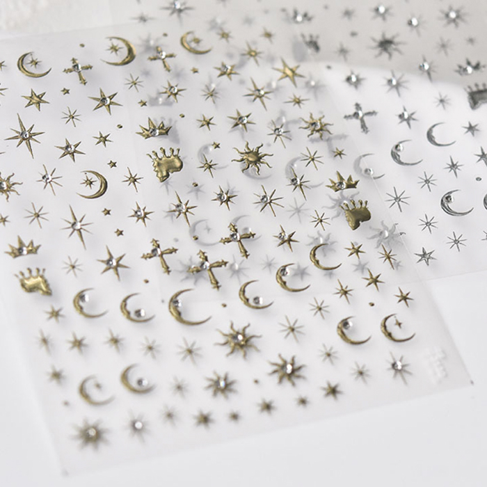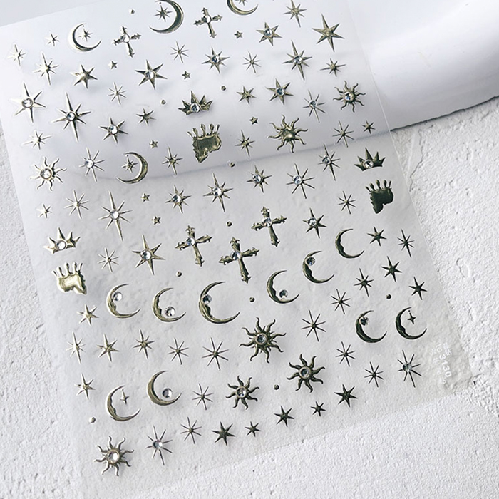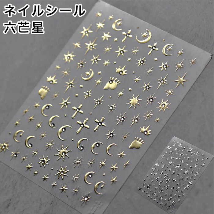 ネイルシール 六芒星 月 Y2K 十字架 【2色からご選択】 地雷系 量産系 サブカル ゴールド シルバー デコネイル デコシール コラージュ ネイルパーツ かわいい デコレーション ジェルネイル ネイルアート セルフネイル ネイルデザイン ネイル 新品 送料無料