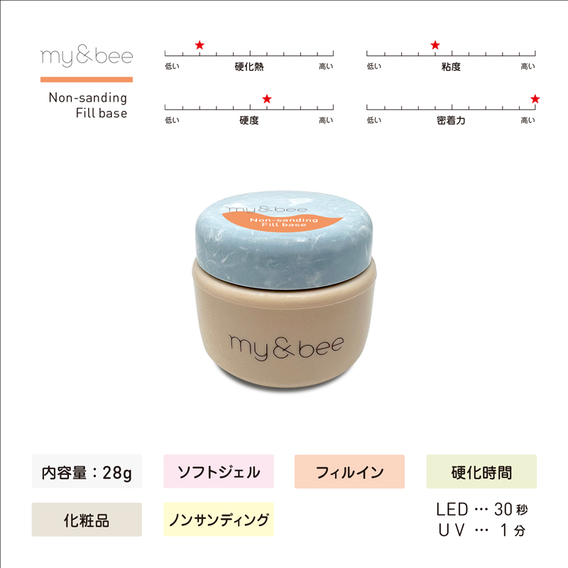 マイビー my&bee ノンサンディングフィルベース 28g 【大サイズ】 ノンサンディング 高密着 ベースジェル フィルイン 薄塗り ジェルネイル ベースコート セルフネイル コンテナ ネイルサロン ネイリスト 密着 Cカーブ 新品 送料無料