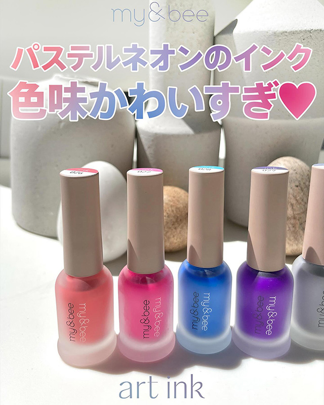 マイビー my&bee アートインク 7ml 【21種からご選択】 AI-019からAI-039 ニュアンスネイル メタリック パステル シアー パール マット にじみ ぼかし リキッド カラーインク 透け感 クリア感 インクネイル トレンド ジェルネイル セルフネイル 新品 送料無料