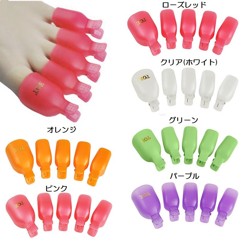 ネイル用品 新品 送料無料 10個セット●足指用 フット用 ソークオフクリップ ネイルオフクリップ●アルミホイル不要 ネイル オフ用クリップ ネイルアート セルフネイル ネイルオフ ジェルオフ ネイルグッズ ピンク、パープル、クリア(ホワイト)、グリーン、ローズレッド 足用
