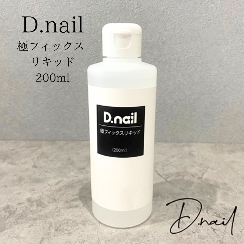 新品の D.nail ディーネイル 極フィックス リキッド 200ml 修正専用溶剤 リムーバー アセトンフリー ラインやアートの修正 ジェルの除去 ジェルオフ ネイルオフ 筆がパサつきにくい ジェルネイル ネイルアート セルフネイル になります。