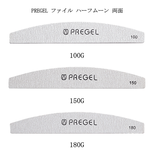プリジェル PREGEL ファイルハーフムーン 両面 100G 150G 180G 【3種からご選択】 ネイルファイル ジェルネイル アクリル ネイルオフ ジェルオフ 表面削り 長さ調整 ウォッシャブルファイル 水洗い可能 ネイルアート デザイン セルフネイル 新品 送料無料