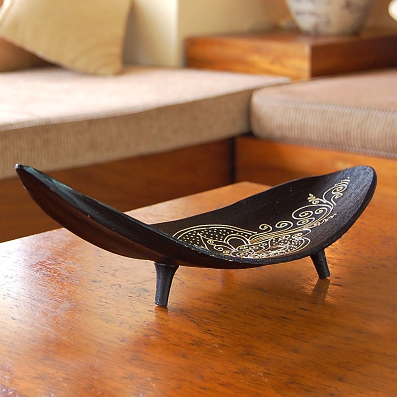 立体感のあるオリエンタル模様が目を惹くパームリーフトレイ。シンプルなつくりですが、ダイナミックで存在感のあるデザインです。