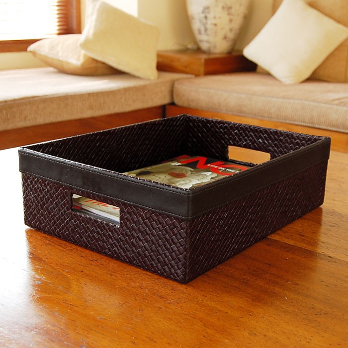 収納ボックス 収納 箱 収納ケース バスケット トレー ボックス パンダン 小物入れ 四角 ポイントレザー 雑貨 インテリア モダン おしゃれ アジア工房 10487