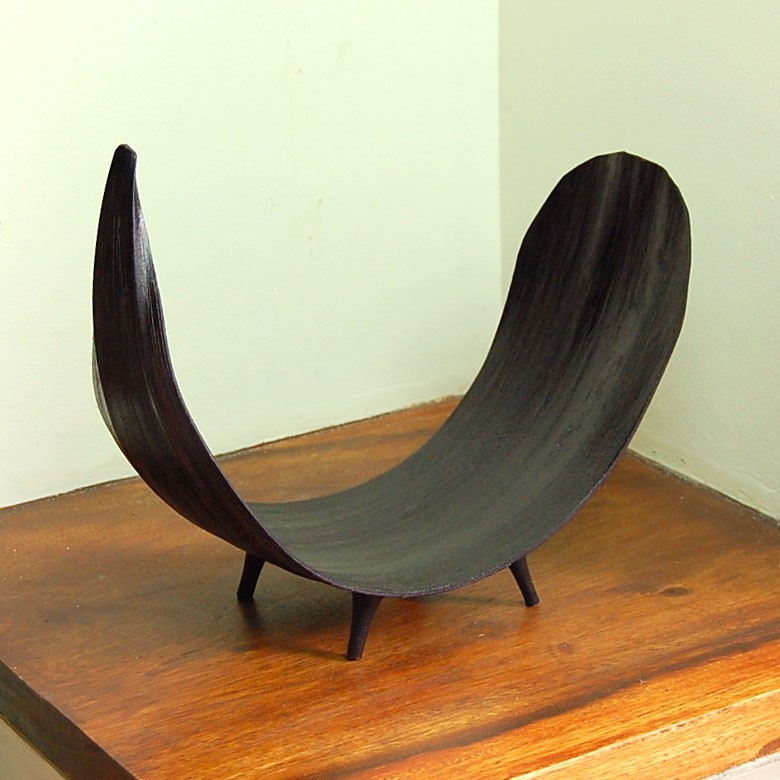 天然のヤシの葉を大きくカールさせて塗装した、プリミティブなデザイントレイ。シンプルなつくりですが、ダイナミックで存在感のあるデザインです。