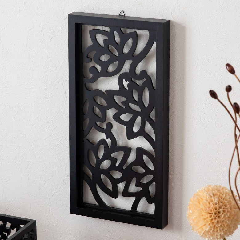 アートパネル レリーフ 壁掛け 木製 約20×40cm ロータス 蓮 壁飾り 木彫り 彫刻 モダン アジアン雑貨 バリ雑貨 ウォールデコレーション 10776