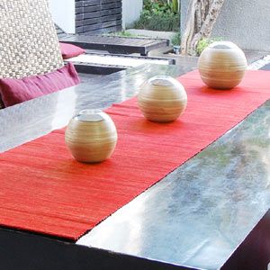 バリ島の職人がひとつひとつ丁寧に編み込んだテーブルランナーは家具でも使われている丈夫な素材『ウォーターヒヤシンス』を使用しております。その素材を染色した糸で編みあげたリーズナブルなアイテム。細かい作業がいくつも合わさって作られ、