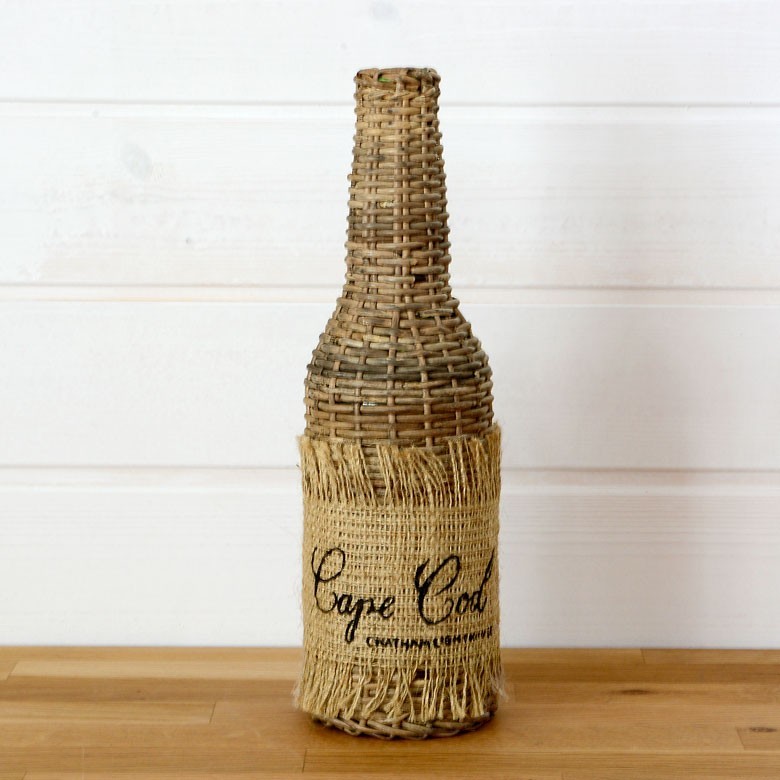花瓶 一輪挿し フラワーベース ガラス ラタン ボトル アンティーク風 西海岸 男前 アジア工房 12710