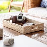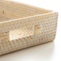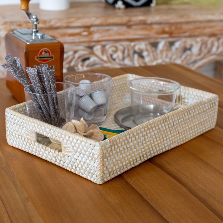 本来のラタンの編み目を活かしつつ、ホワイトウォッシュ加工を施した、バリ島生まれのラタンシリーズ。ラタンのナチュラルな質感はそのままに、爽やかでシャビーな雰囲気が魅力!フラットなスクエアの使いやすいトレーは、日用品や小物などをまとめて収納するのに便利です。
