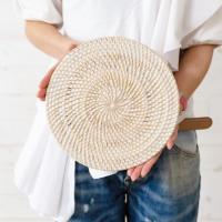 本来のラタンの編み目を活かしつつ、ホワイトウォッシュ加工を施した、バリ島生まれのラタンシリーズ。ラタンのナチュラルな質感はそのままに、爽やかでシャビーな雰囲気が魅力!少し小ぶりのサイズ感で、来客時のデザートマットやオブジェや花瓶に敷くプレースマットとして活躍してくれます。