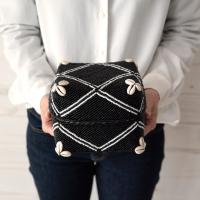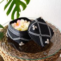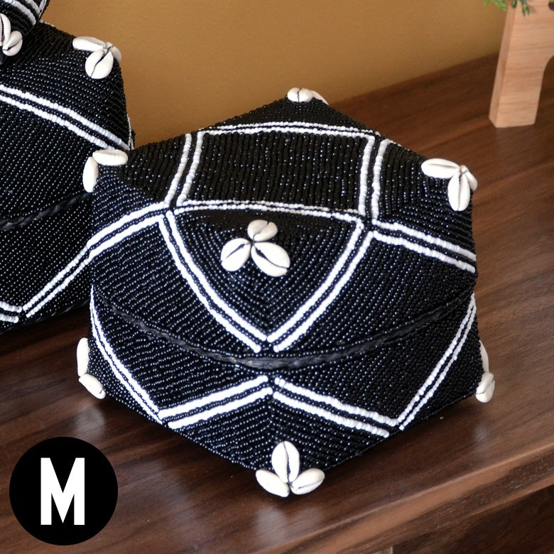 小物入れ 蓋つき ビーズ製 バスケット 収納 ダイヤ柄 アジアン雑貨 Mサイズ アクセサリーボックス ソカシ フタ付きケース ブラック おしゃれ 13533-m