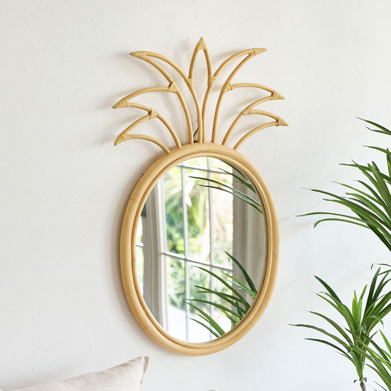 温かみのあるカラーとトロピカルなパイナップルデザインは、サイズも大きく鏡としてだけでなく、インテリア雑貨として壁を素敵に演出してくれます。