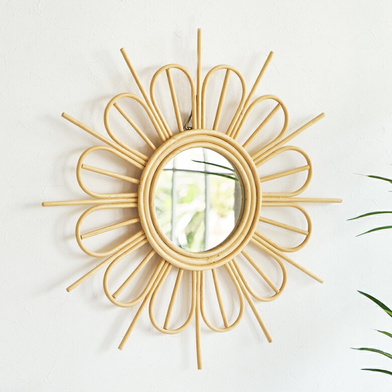 ・バリ島で編まれた天然素材ラタンの壁掛けミラー