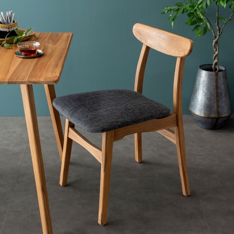 ダイニングチェア 1人掛け 背もたれつき 天然木製「TAKE TEAK」 天然木 チーク材 ファブリック グレー 北欧 モダン シンプル 13734