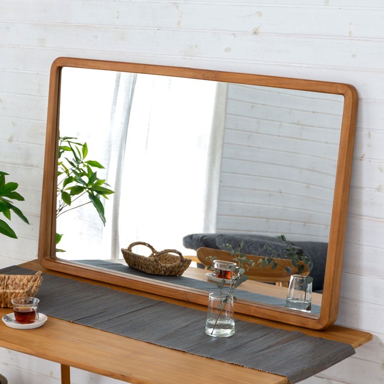 壁掛けミラー 鏡 メイク台 天然木製「TAKE TEAK」 チーク材 鏡台 アメリカン 北欧 モダン シンプル 13736