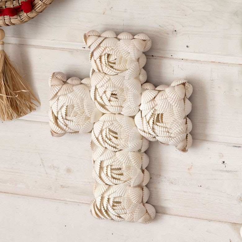 インテリア雑貨 アジアン雑貨 バリ おしゃれ シェル 貝殻 BOHOスタイル ディスプレイ クロス 天然 オーナメントフック付き ホワイト 飾り 壁飾り 13840