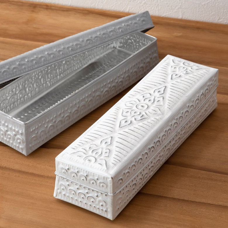 小物入れ 蓋つき アルミ製 収納 カトラリーケース ペンケース 長方形 型押し アジアン おしゃれ BOX 収納ケース 13861