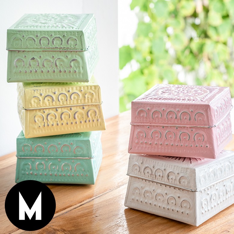 小物入れ 蓋つき アルミ製 収納 アクセサリーケース ジュエリーケース 正方形 型押し アジアン おしゃれ BOX 収納ケース 幅約11cm 13862