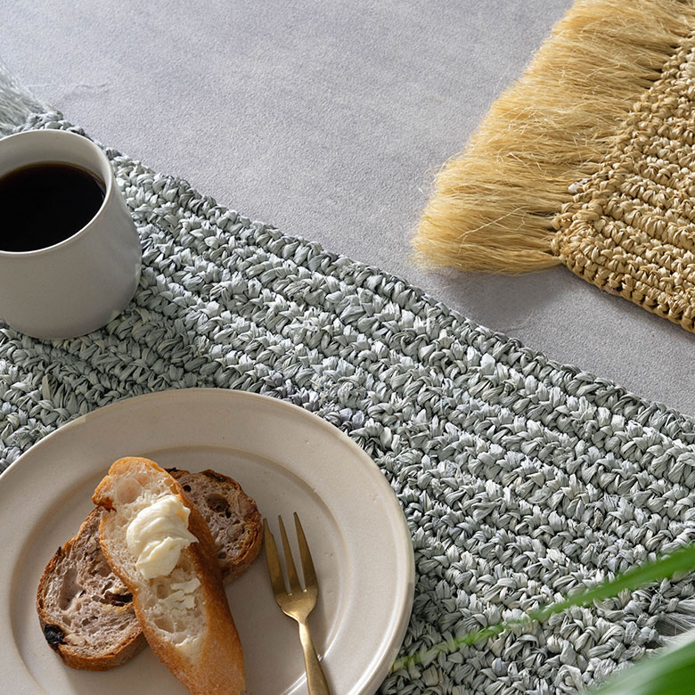 ランチョンマットとして使えば、いつもの食卓がぐっと洗練された印象に。ナチュラルな素材感が器や料理を引き立て、リゾート感のあるテーブルコーディネートを楽しめます。