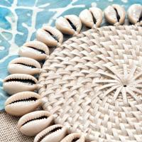 ラタンのまわりをシェルがぐるりと囲った、リゾート感たっぷりのラウンド型コースター。