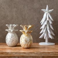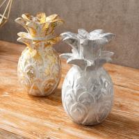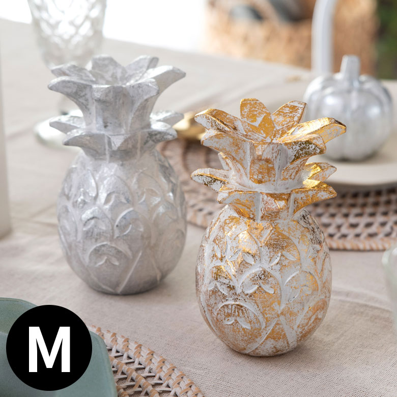 オブジェ ウッド 木製 木彫り パイナップル パイン フルーツ 果物 シルバー ゴールド W 9.5cm D 9.5cm H 15cm 置物 バリ ハロウィン クリスマス 13898