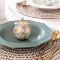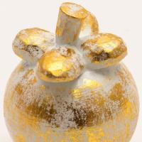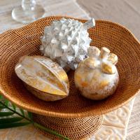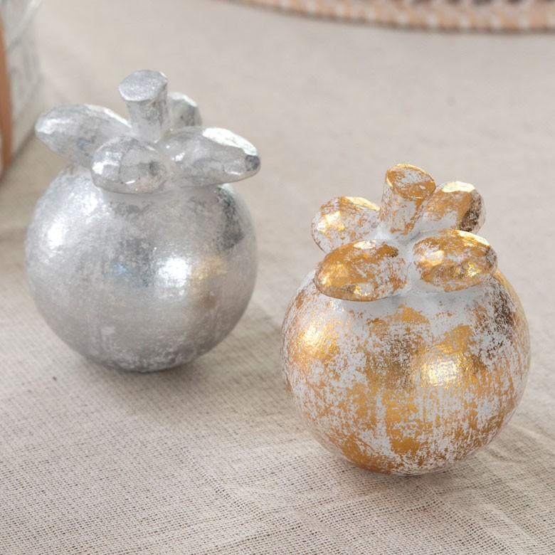 オブジェ ウッド 木製 木彫り 天然木 マンゴスチン フルーツ 果物 シルバー ゴールド W 6.5cm D 6.5cm H 8cm 置物 バリ ハロウィン クリスマス 13900