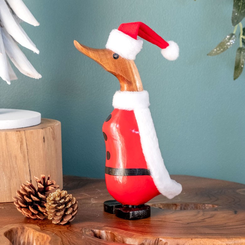 オブジェ あひる クリスマス 飾り デコレーション サンタ クロース フィギュア 人形 置物 木 ウッド インテリア おしゃれ 北欧 リゾート アジアン 西海岸 13911