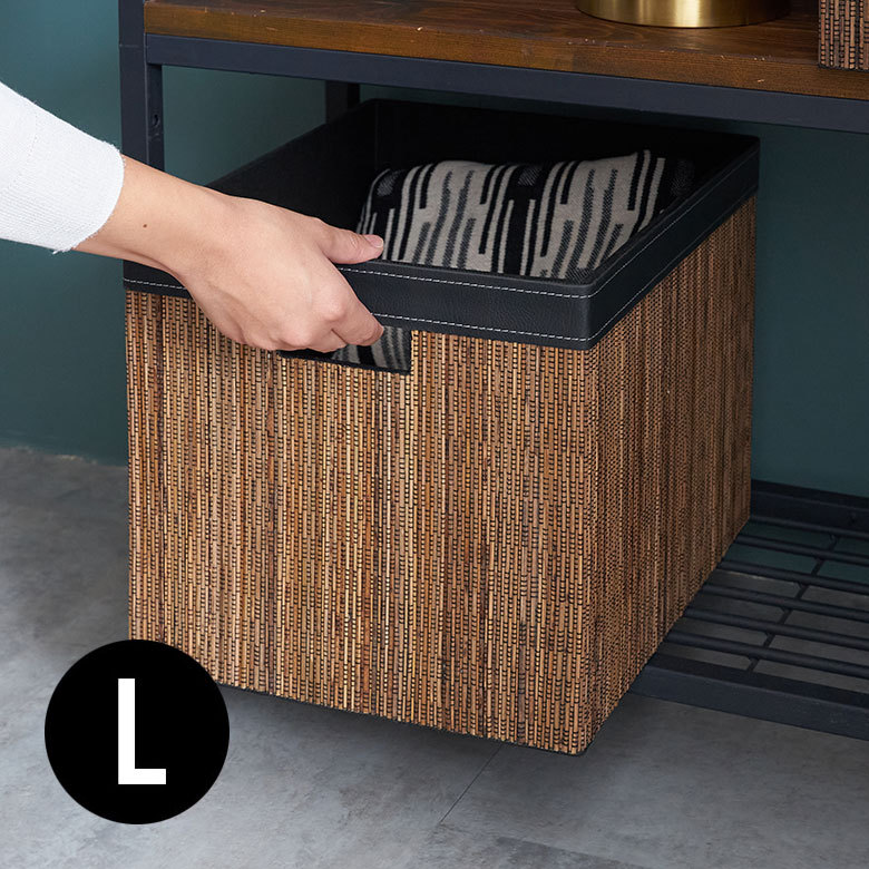 仕上げの美しさが魅力[持ち手付ボックス Lサイズ]インドネシアならではの天然素材