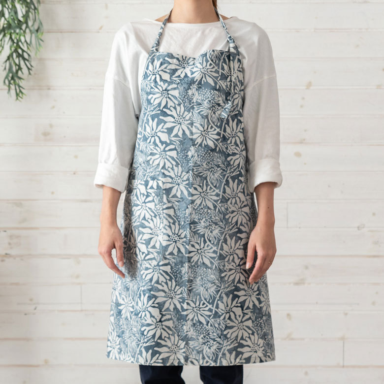 南国リゾートを感じる、インドネシアオリジナルのフラワーパターンのエプロン。