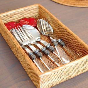 バリ島のトゥガナン村の職人がひとつずつ丁寧に編んで作ったアタのケース。デスク回りではペントレーとして、お玄関に置いて鍵や小物を整理するのにも丁度いい大きさです。ダイニングではスプーンやフォークなどのカトラリーを入れて食卓に出すだけで、いつもの食卓がレストランの雰囲気に!リビングではつい増えてしまいがちなリモコン収納に使ってみるのも斬新ですよね!アタは軽くて丈夫で落としても割れないので小さなお子様がいるご家庭にも安心ですね。