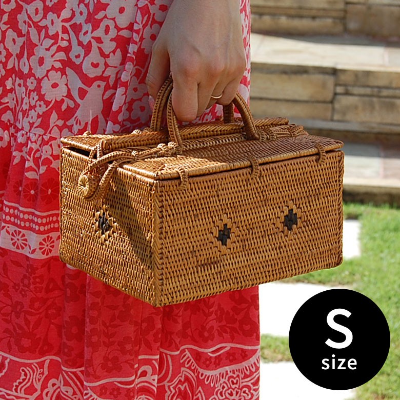 ■サイズ(cm): 外寸:約 W 20 × D 14.5 × H 16 内寸:約 W 13 × D 12.5 × H 8.5 / W 5 × D 12.5 × H 8.5 ※ハンドメイド品ですので多少サイズは前後します。 ■クオリティ スタンダードクオリティ ■素材:アタ ■生産国:バリ(インドネシア) ■ご注意: ※ハンドメイドのためサイズ・形・柄のパターンが写真と異なる場合があります。 ※複数個を同時にお買い求めの際はサイズに若干のバラつきがでる場合があります。 ※乾燥によってアタの繊維が収縮すると”ゆがみ”が生じる場合があります。小さなゆがみであれば逆方向にひねれば解消することができます。強くひねり過ぎると壊れる場合もありますのでご注意ください。 ※ココナッツの殻で燻していますので、香ばしい香りがします。