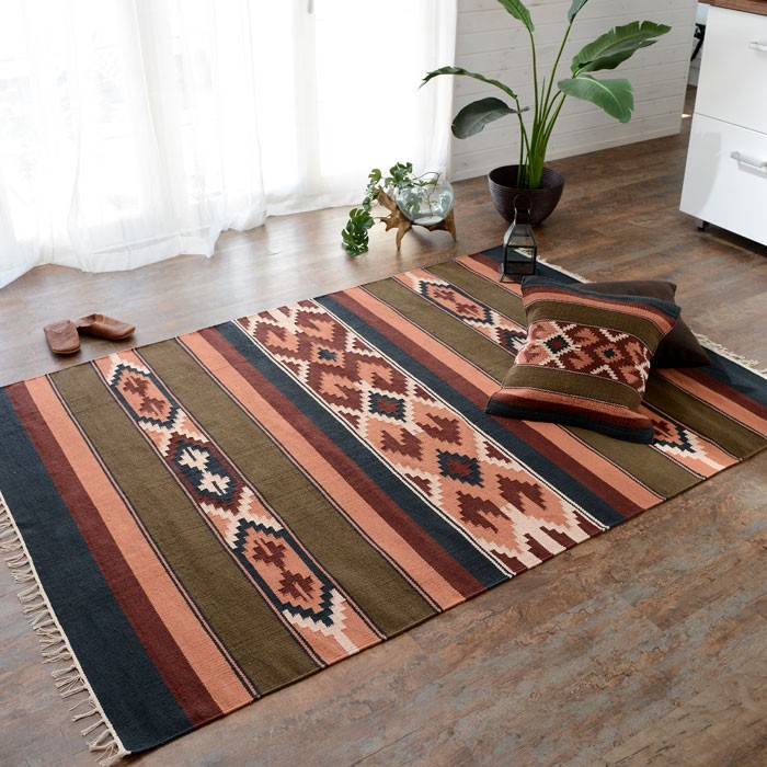 ラグマット キリムラグ コットンキリム ラグ カーペット おしゃれ 長方形 140×200cm Hタイプ インド綿 エスニック ネイティブ 民族 31240