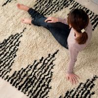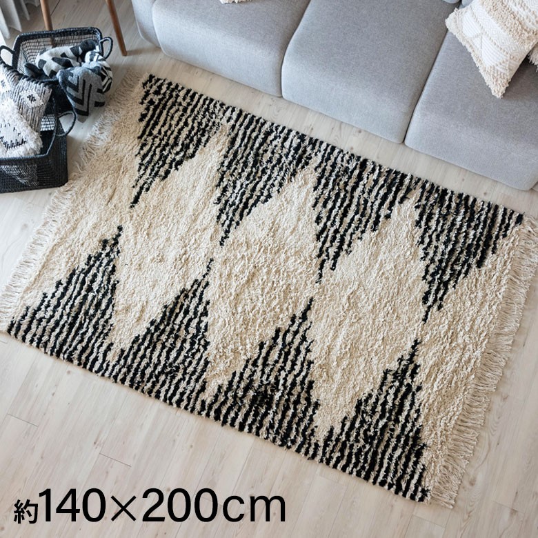 ラグ ラグマット ダイヤ柄 ダイヤモンド 140×200cm 白黒 BOHO カーペット 絨毯 じゅうたん おしゃれ エスニック ボーホー モノトーン オールシーズン 34416