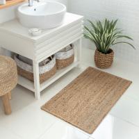 天然素材のジュート100%を使った、編み目が素敵なラグ。天然素材ならではのグラデーションのような色合いと、編み目模様はシンプルながら存在感があります。