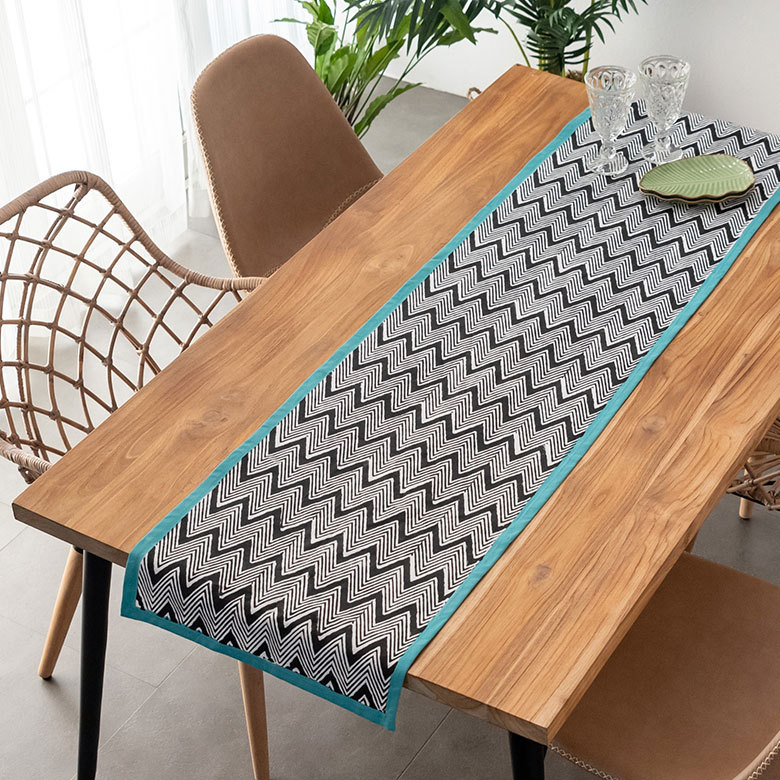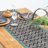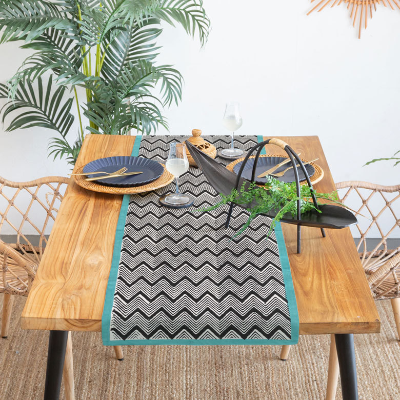 テーブルランナー インド ブロック プリント 柄 綿 コットン W約150cm テーブルカバー 布 ダイニング ブラック アジアン エスニック 34452-bk