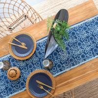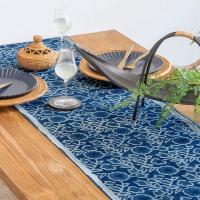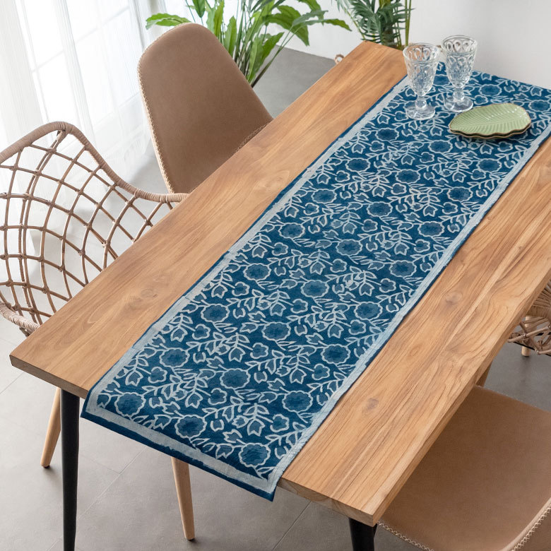 テーブルランナー インド ブロック プリント 柄 綿 コットン W約150cm テーブルカバー 布 ダイニング ブルー アジアン エスニック 34452-bl
