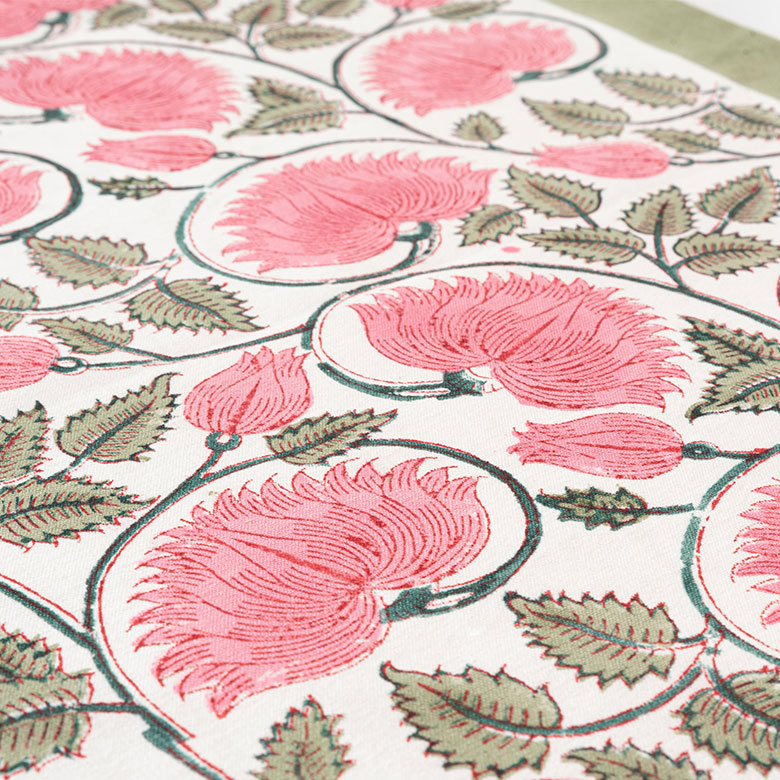 ※手作業でのブロックプリントのため、色や柄の擦れやズレがあります。