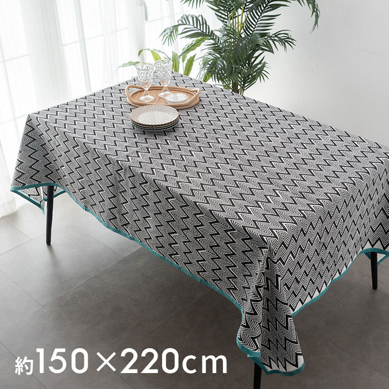 テーブルクロス インド ブロック プリント 柄 綿 コットン 約150cm×220cm テーブルカバー 布 ダイニング ブラック アジアン エスニック 34453-bk