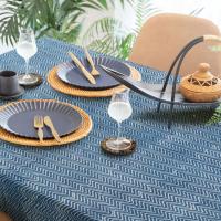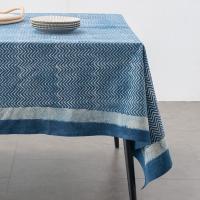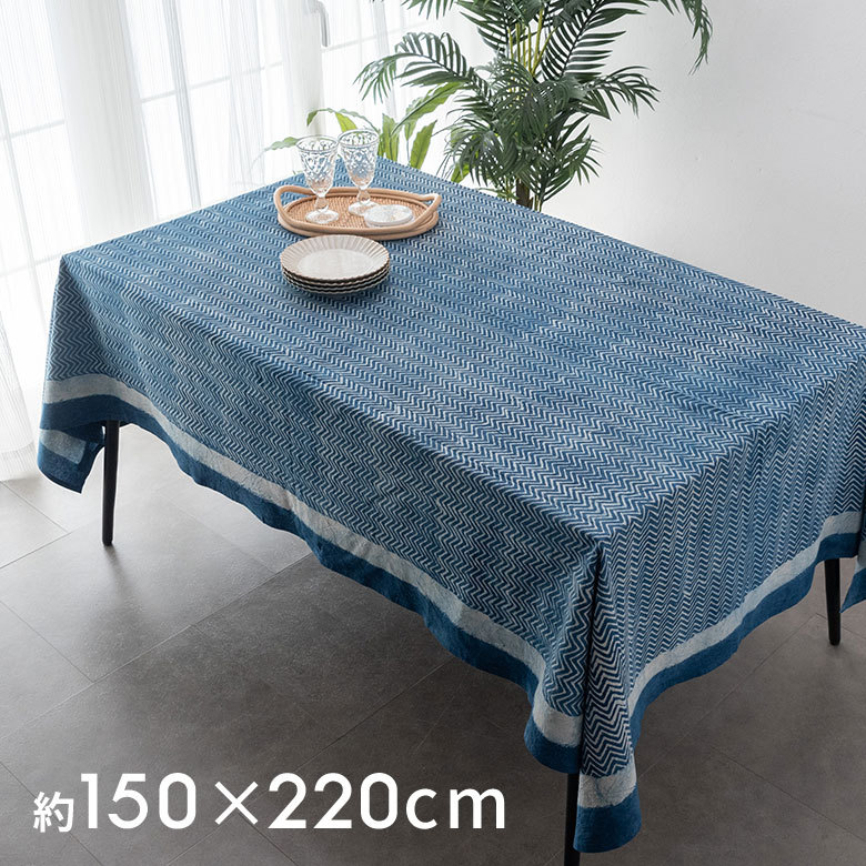 テーブルクロス インド ブロック プリント 柄 綿 コットン 約150cm×220cm テーブルカバー 布 ダイニング ネイビー アジアン エスニック 34453-nv