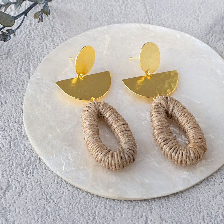 ピアス 真鍮 ジュート ゴールド アクセサリー レディース フック ピアス エスニック 揺れる エレガント カジュアル アジアン おしゃれ 34458