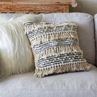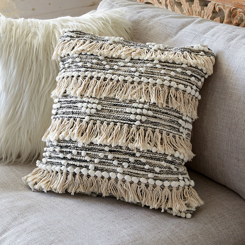 クッションカバー コットン ハンドルーム 手織り 45x45cm フリンジ Raha ラーハ 正方形 四角 ソファ ベッド アウトドア リビング BOHO アジアン 雑貨 34477-bk