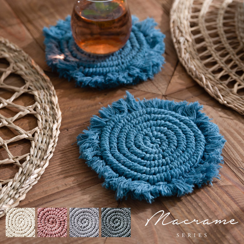 ハンドメイドならではの温かみを感じるマクラメコースター。