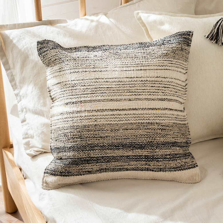 モノトーンのグラデーションカラーがおしゃれなクッションカバー。シンプルな中にもリズム感のあるストライプデザインで、ソファやベッドに置くだけで、空間をセンスアップしてくれます。